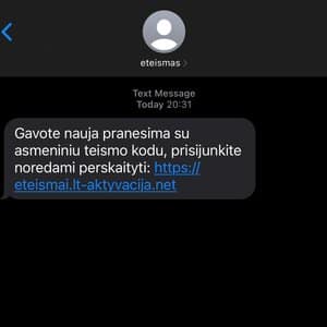 Sukčiai sugalvojo naują sukčiavimo formą! Į lietuviškus telefonų numerius plūsta su informacija apie teismo posėdžius su galimai kenksmingomis nuorodomis. Siuntėjo numeris užmaskuotas, sukuriant tikrumo iliuziją, gramatinės klaidos tekste ir žinoma pati interaktyvi nuoroda.
