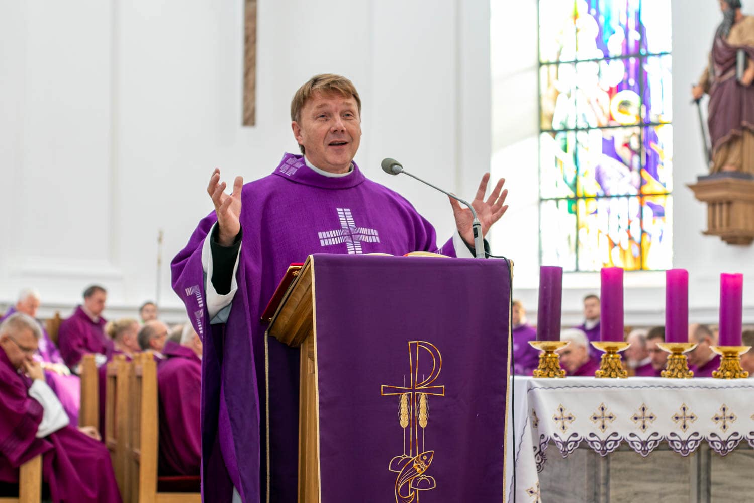 Pamokslininkas visiems susirinkusiems linkėjo išlaikyti degančius širdies žiburius. „Tebūnie jūsų strėnos sujuostos ir žiburiai uždegti.” (Lk 12,35) „Tame žodyje „žiburiai” sutelpa labai daug: tikėjimo šviesa, meilė, Dievo Žodis, žmogaus širdies šiluma. Tą degantį žiburį daug kas nori mumyse užgesinti, ir kartais tikrai sunku tą lyg degančią žvakės liepsnelę pavėjui uždegti ir išlaikyti šviečiančią. Tačiau Jėzus nori įžiebti žemėje ugnį, kurios neužgesintų jokios tamsybės, išbandymai ar netikėjimas. Tad melskime visi, kad mūsų visų širdis Viešpats uždegtų, ir kad ta ugnis liepsnotų, kad atėjus Šeimininkui, Jis rastų mus budinčius ir laukiančius”