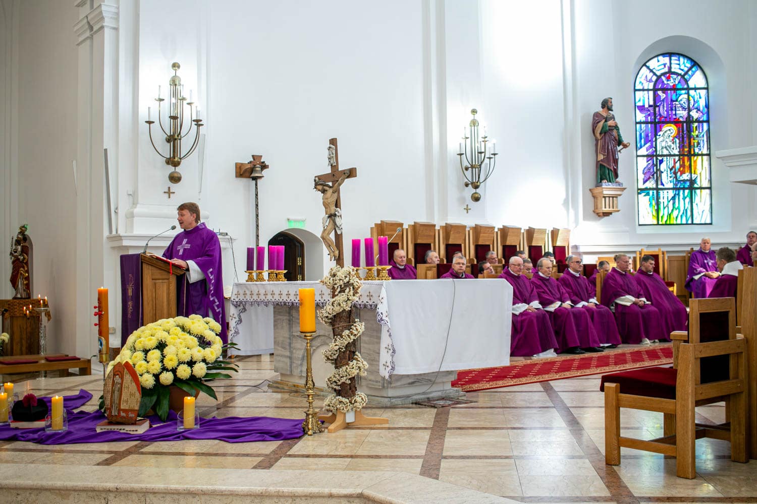 Šventųjų Mišių metu homiliją sakė Aukštosios Panemunės Švč. Mergelės Marijos Vardo parapijos klebonas kun. Rimantas Baltrušaitis.